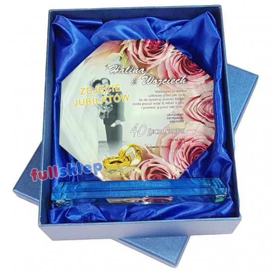 Na oferowanej statuetce mogą Państwo umieścić fotografię osób obchodzących jubileusz małżeństwa a także własną wyjątkową dedykację.